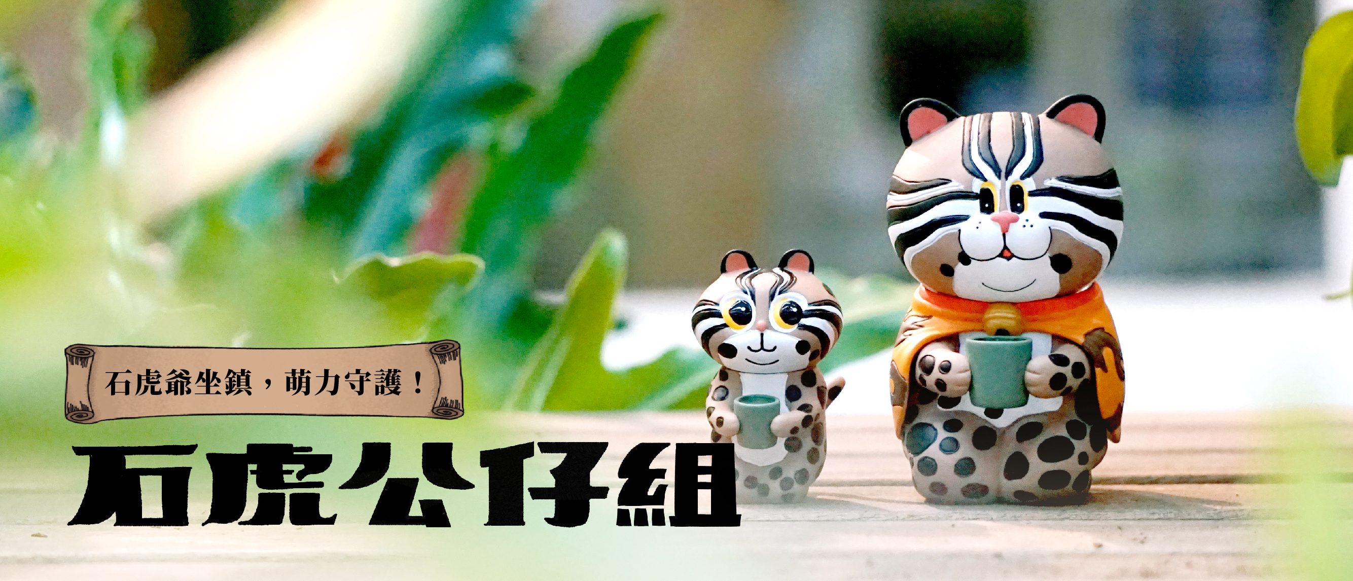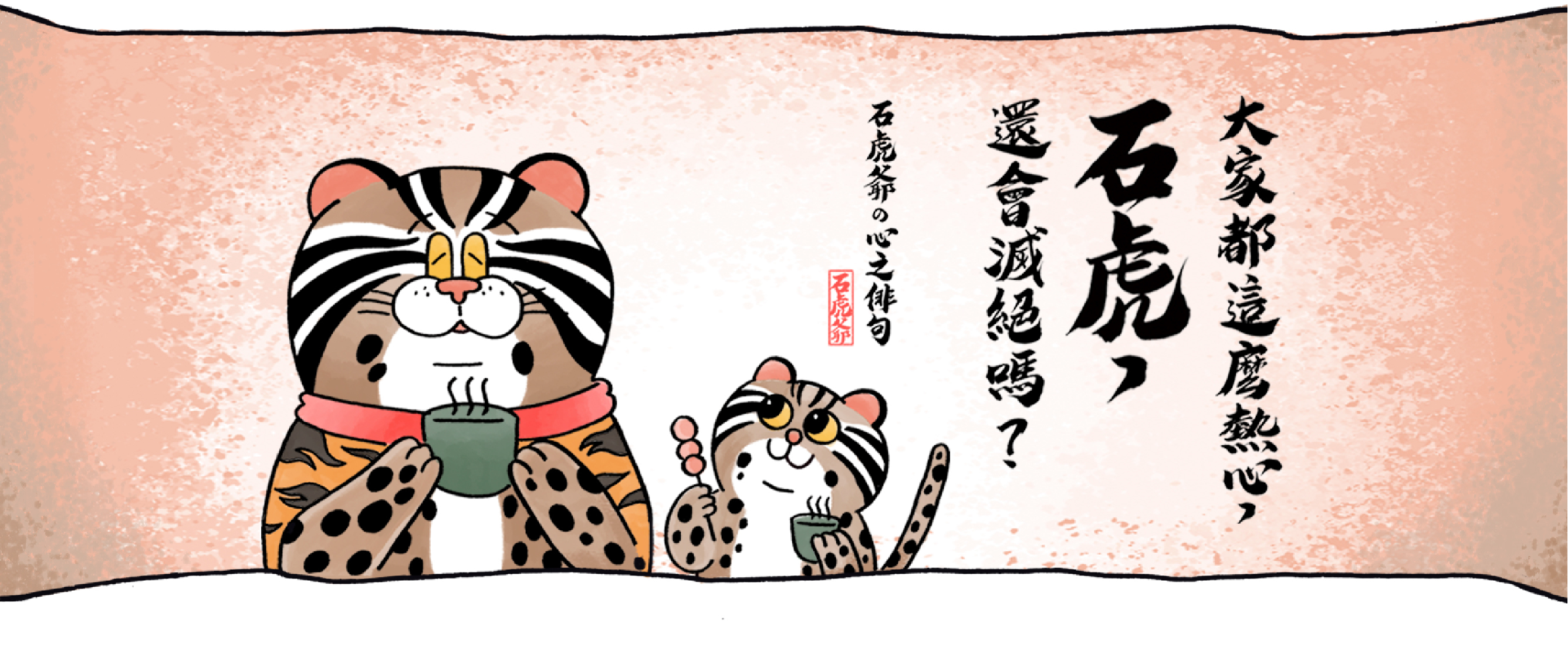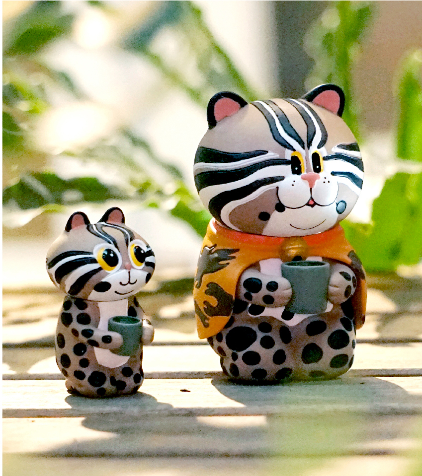 威風凜凜的石虎爺,胖胖的臉與渾圓身材, 是守護石虎們好運長久的大家長。代表著新生命的小跟班「小石」, 則是我們對臺灣石虎的未來深切的期盼!邀請您跟隨石虎爺與小石, 一起努力引發更多人關心石虎的現況,守護石虎的棲地,幫牠們度過難關。
