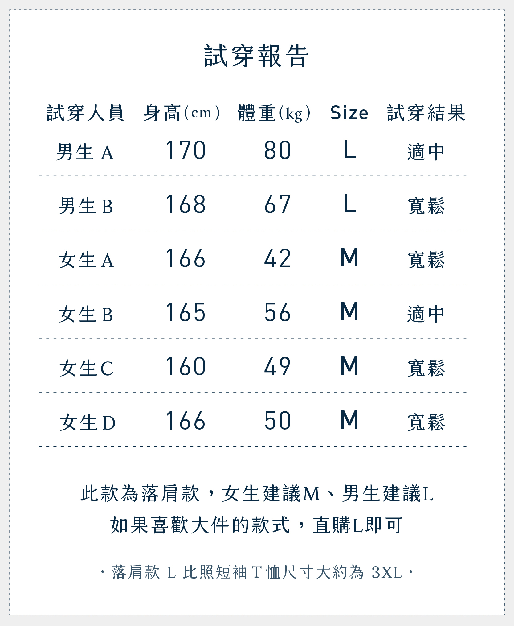 可測量平常穿的衣服再對比頁面下方尺寸表,選擇最合適的尺寸,衣物一經下水或沾染污漬恕不退換貨。