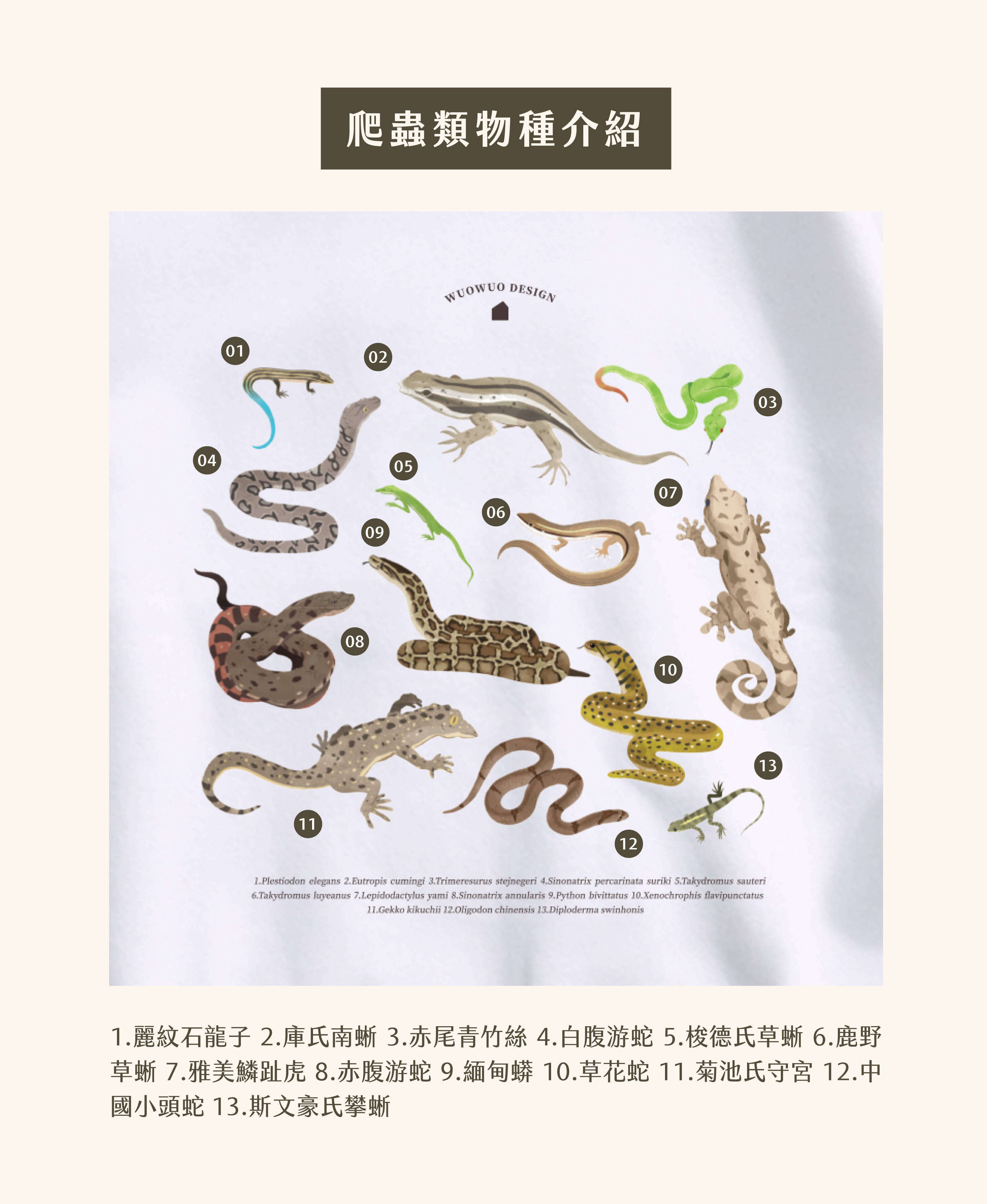爬蟲類身上披著一層鱗片,除了保護柔軟身軀,亦保存體內水分。不同種類蜥蜴、蛇類可生存於沙漠或荒地,展現堅強生命力。