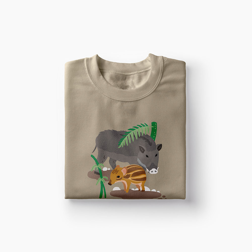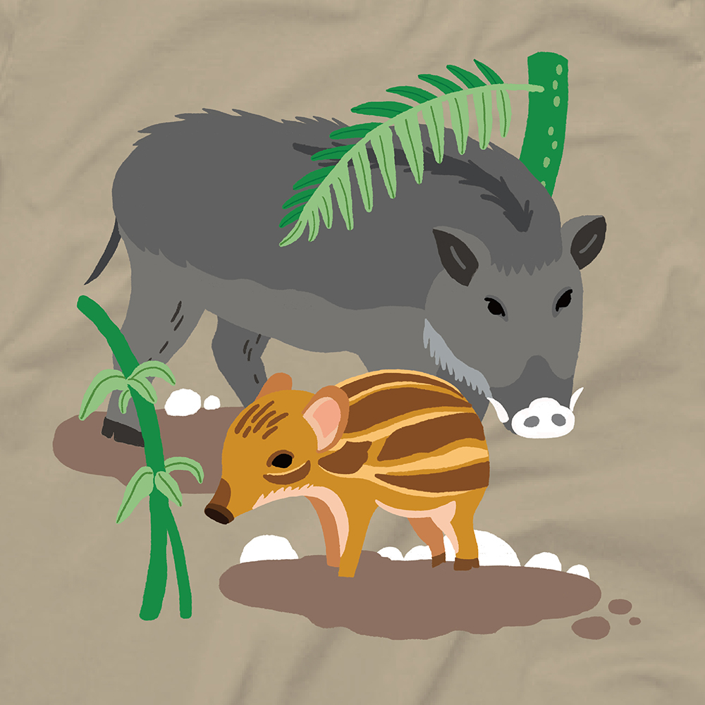 群居的牠們多以6~10隻幼豬與母豬共同生活,幼豬身上獨特的褐色條紋有著保護作用,長大後的獠牙就是挖掘土裡好料的絕佳利器!