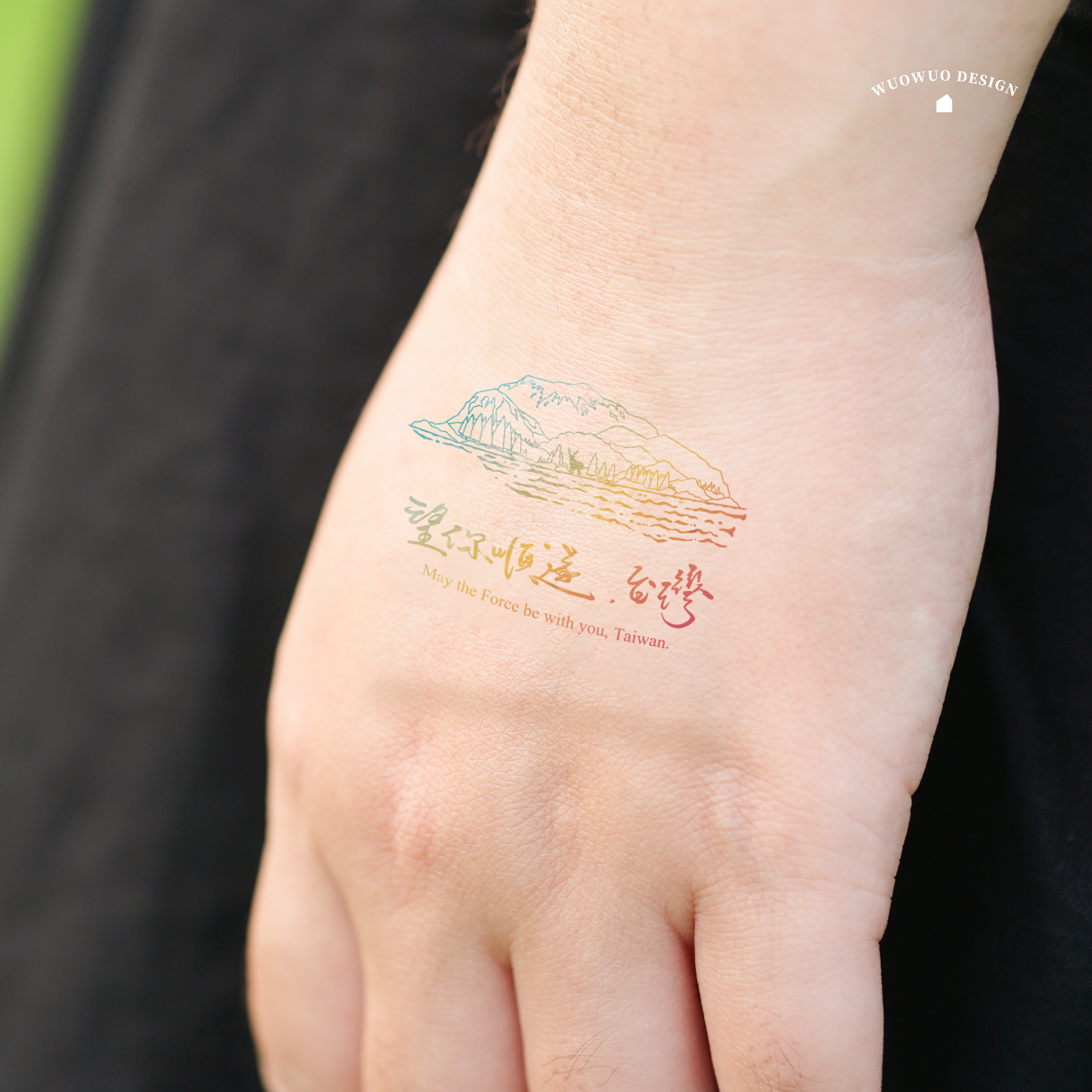 紋身貼紙採用無毒紋身膠,紋身約可持續 3-5 天。如有過敏或不適請儘速移除。