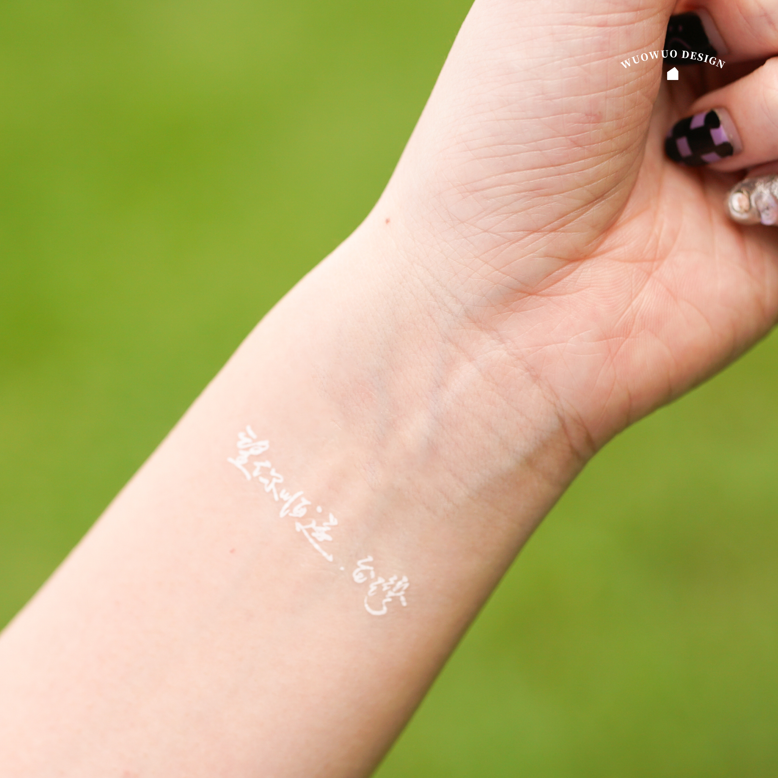 靜置 10 秒左右,待圖案轉印,慢慢將紙背移除,即紋身完成!